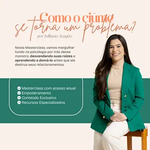 Essa masterclass é um soco de realidade: mostra como o ciúme começa pequeno, mas pode destruir relações, autoestima e sua sanidade emocional. São 40 minutos de conteúdo direto, prático e sem enrolação – pra você entender o que está por trás do seu ciúme, como ele se manifesta e o que fazer com isso. Assista e nunca mais lide com o ciúme da mesma forma.